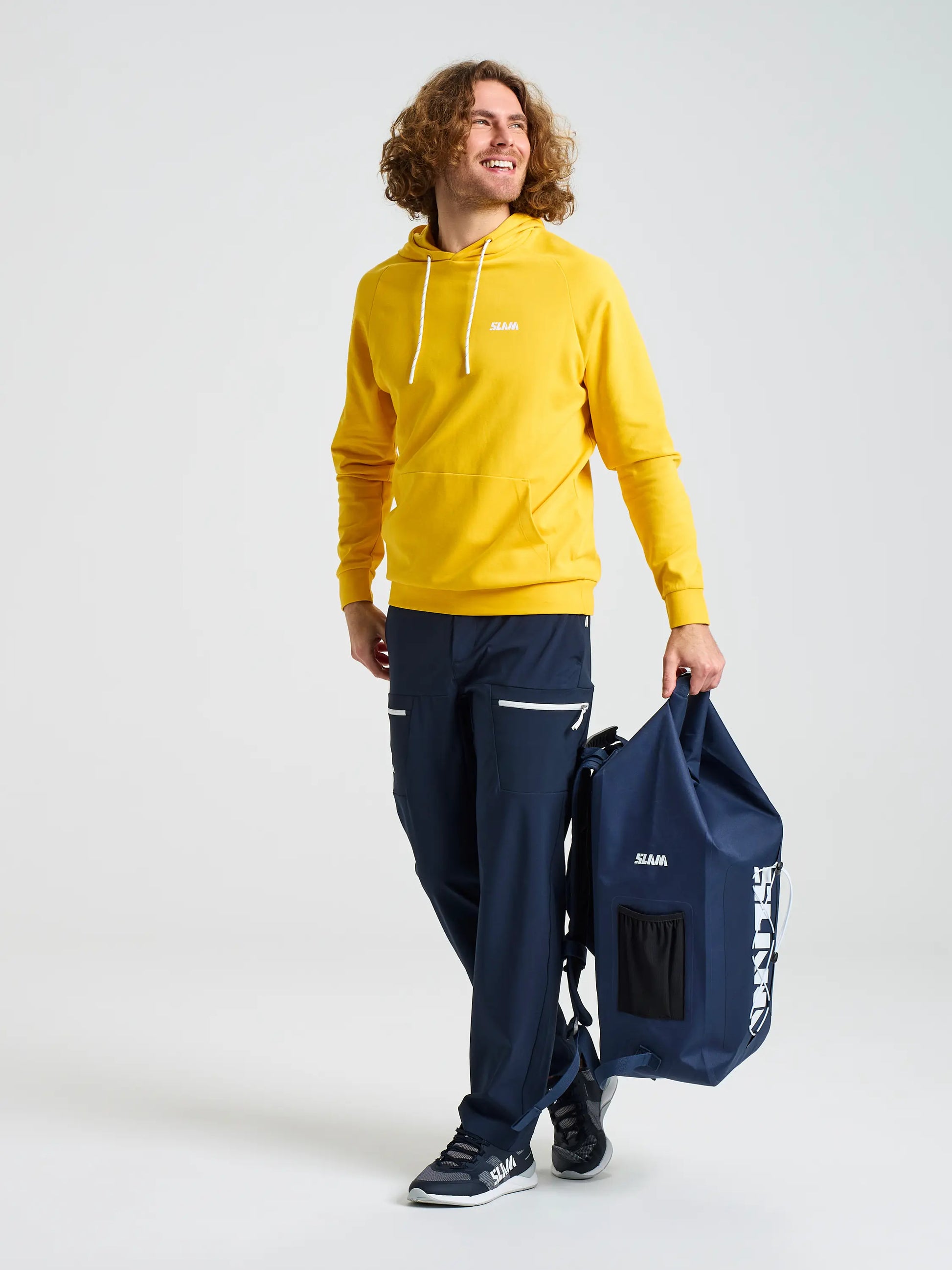 Logo Hoodie entsteht als der direkteste und klarste Ausdruck der Graphics Kollektion. Es ist ein Hoodie, der das Brand auf unmittelbare Weise repräsentiert, durch ein essentielles Design und eine auf Komfort ausgerichtete Konstruktion, frei von überflüssigen Elementen. Die Ausführung ohne Reißverschluss unterstreicht die Idee eines kompakten, durchgängigen Kleidungsstücks, ideal für den täglichen Einsatz vor und nach dem Einsatz auf dem Wasser. Dieser Hoodie findet seinen natürlichen Platz am Steg, auf Reisen oder in informellen Momenten rund um das Regattaleben und bewahrt dabei stets ein Erscheinungsbild, das mit der SLAM Welt stimmig ist. Die große vordere Kängurutasche erhöht die Alltagstauglichkeit, während Saum und Bündchen aus elastischem Rippstrick für einen stabilen und angenehmen Sitz sorgen. Die Regular Fit Passform macht das Kleidungsstück leicht tragbar und vielseitig kombinierbar mit technischen Hosen, Chinos oder Denim. Das Logo wird zum visuellen Mittelpunkt des Hoodies, gedacht für alle, die ein klares und wiedererkennbares grafisches Zeichen suchen, das die Zugehörigkeit zur Welt des Segelns und zum SLAM Stil auch außerhalb des Wassers vermittelt. Logo Hoodie ist ein vielseitiges Sweatshirt, das den nautischen Alltag natürlich begleitet und Identität, Komfort und Funktionalität wirkungsvoll vereint.